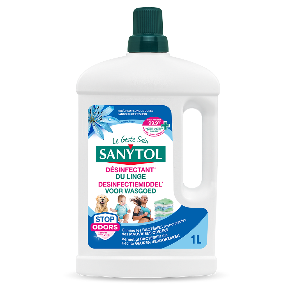 Dankzij het desinfecterende wasmiddel Sanytol geniet u van hygiënisch schone, aangenaam geurende was die lang fris blijft. De DRIEVOUDIGE werking elimineert 99,9 % van de bacteriën, Candida albicans en virussen zoals het humaan coronavirus 229E en het H1N1-virus. Bovendien biedt de exclusieve STOP ODEURS-technologie: